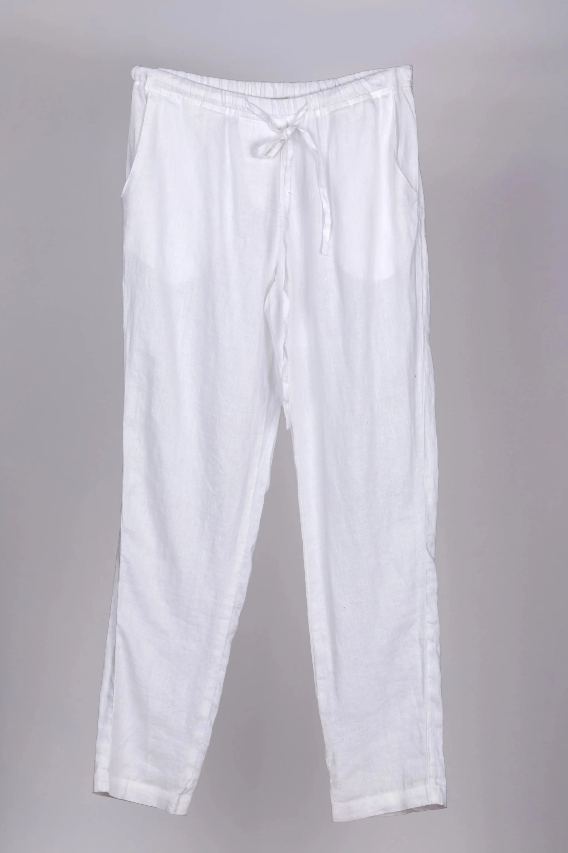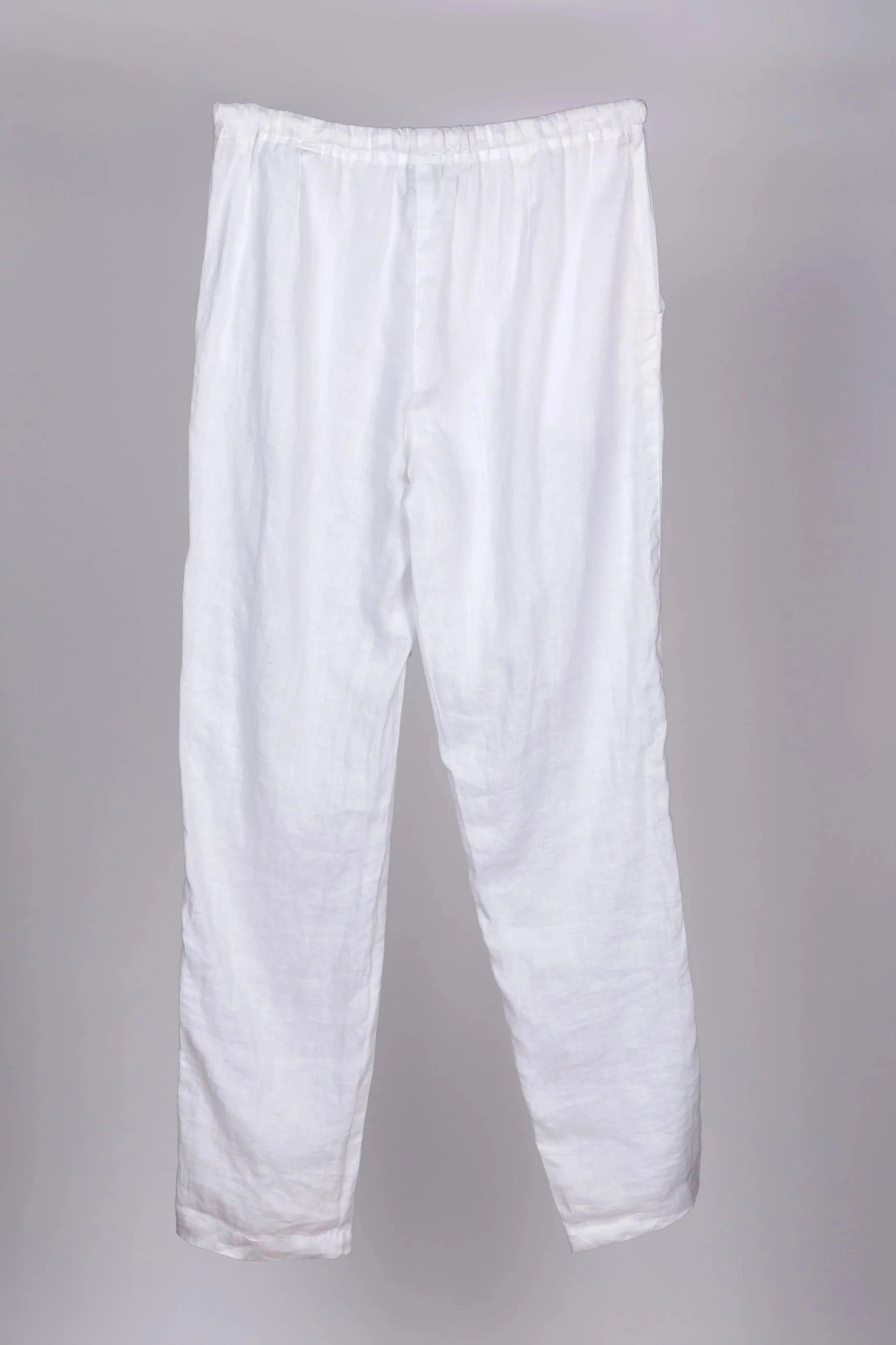 A wardrobe staple, the Classic Slim Fit Linen Pants is a chic yet easy alternative to your denims. A pull on style with an elastic waist and drawstring. A Dolma classic- it is the one pair of pants that goes with all our tops and tunics.