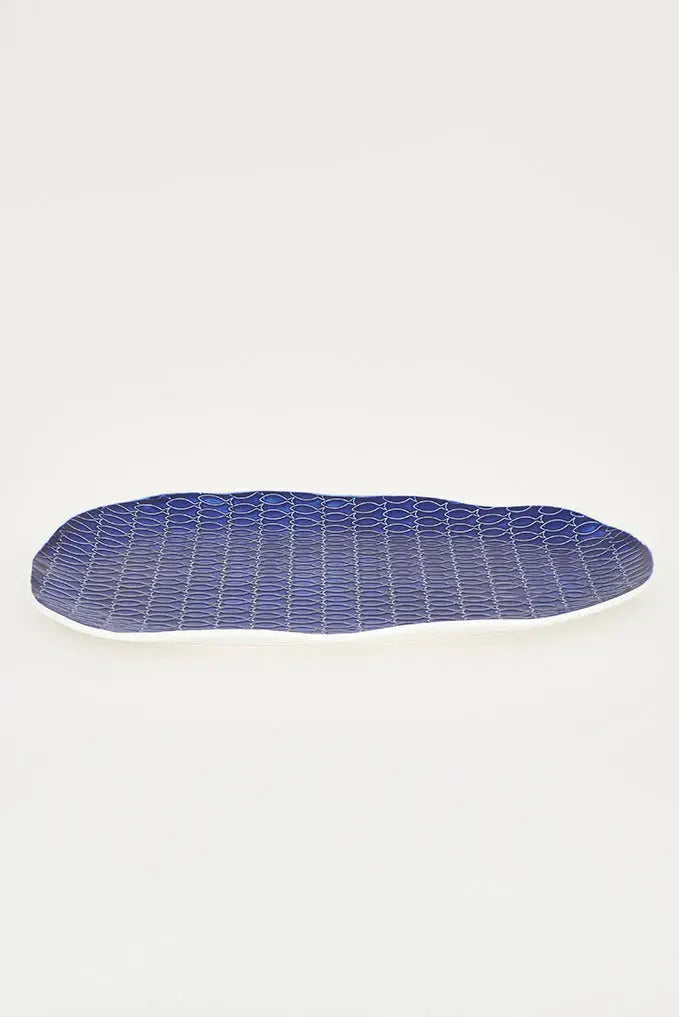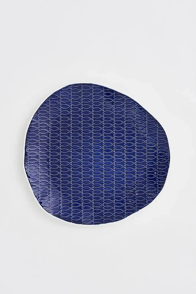 Blue Ceramic Fish Plate (Irregular Round)