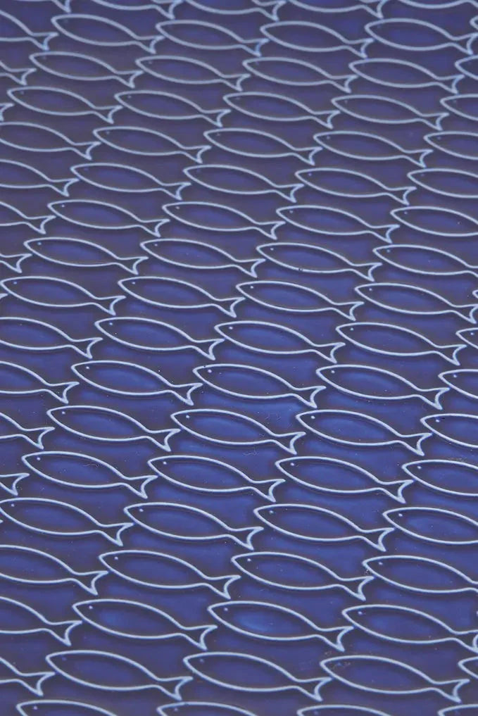 Embossed fish plate in blue ceramic: irregular shape for an original touch