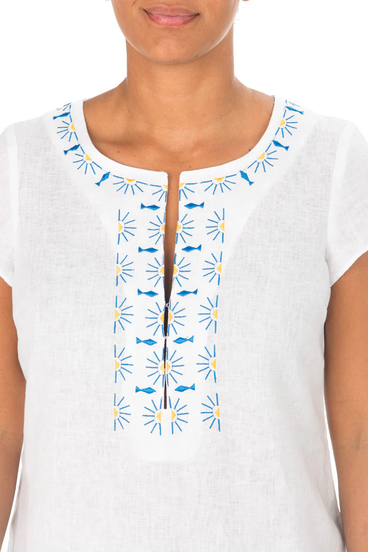 - Contrast embroidery around neck and hem